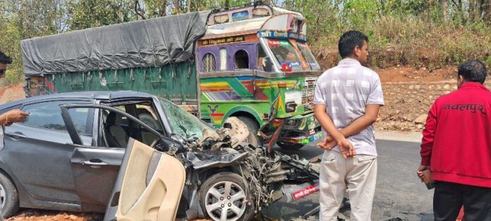 दुम्किबासबाट कावासोतीतर्फ आउँदै गरेको लु १ ख ९५८० नम्बरको चामल लोड भएको ट्रक र विपरीत दिशामा गुडिरहेको ग.प्र.०१–००१ च ०४७४ नम्बरको कार एकआपसमा ठोक्किएर दुर्घटना भएको हो ।